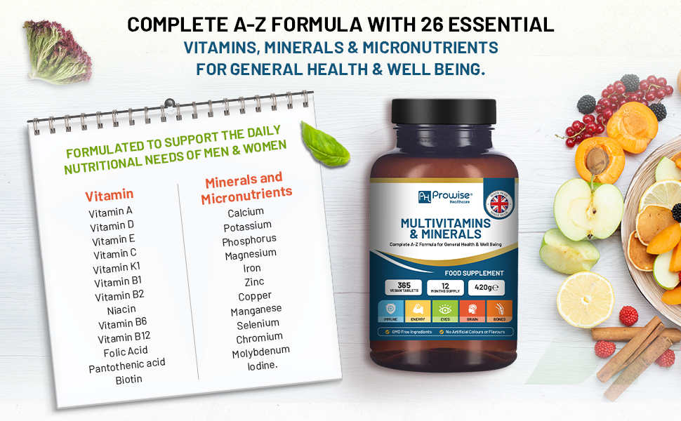 Prowise UK A–Z Multivitamins & Minerals is a complete daily multivitamin supplement designed for both women and men looking to support overall health and nutritional balance.
