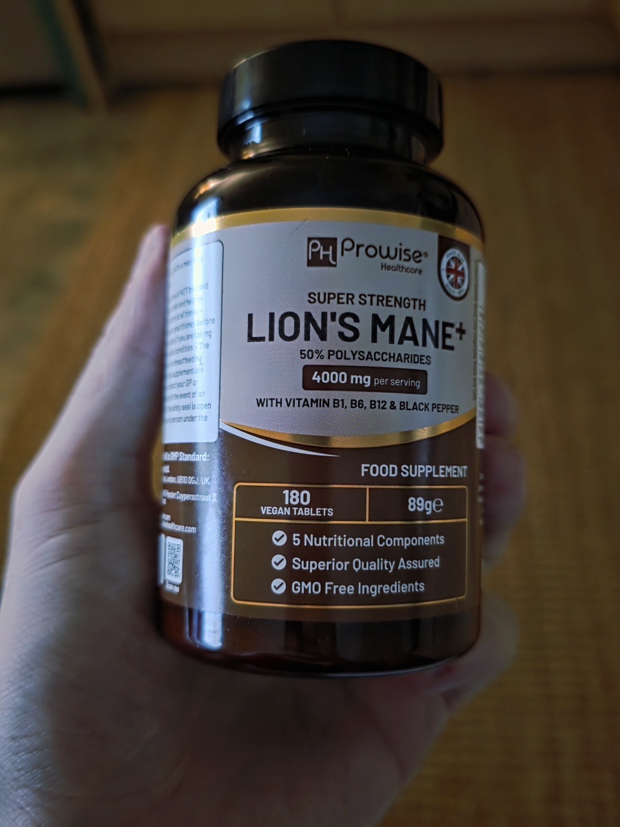 Support your daily routine with Prowise UK Lion’s Mane Mushroom 4000mg, a high-strength 15:1 extract delivering 50% polysaccharides, enriched with Vitamins B1, B6, B12, and black pepper for enhanced absorption.