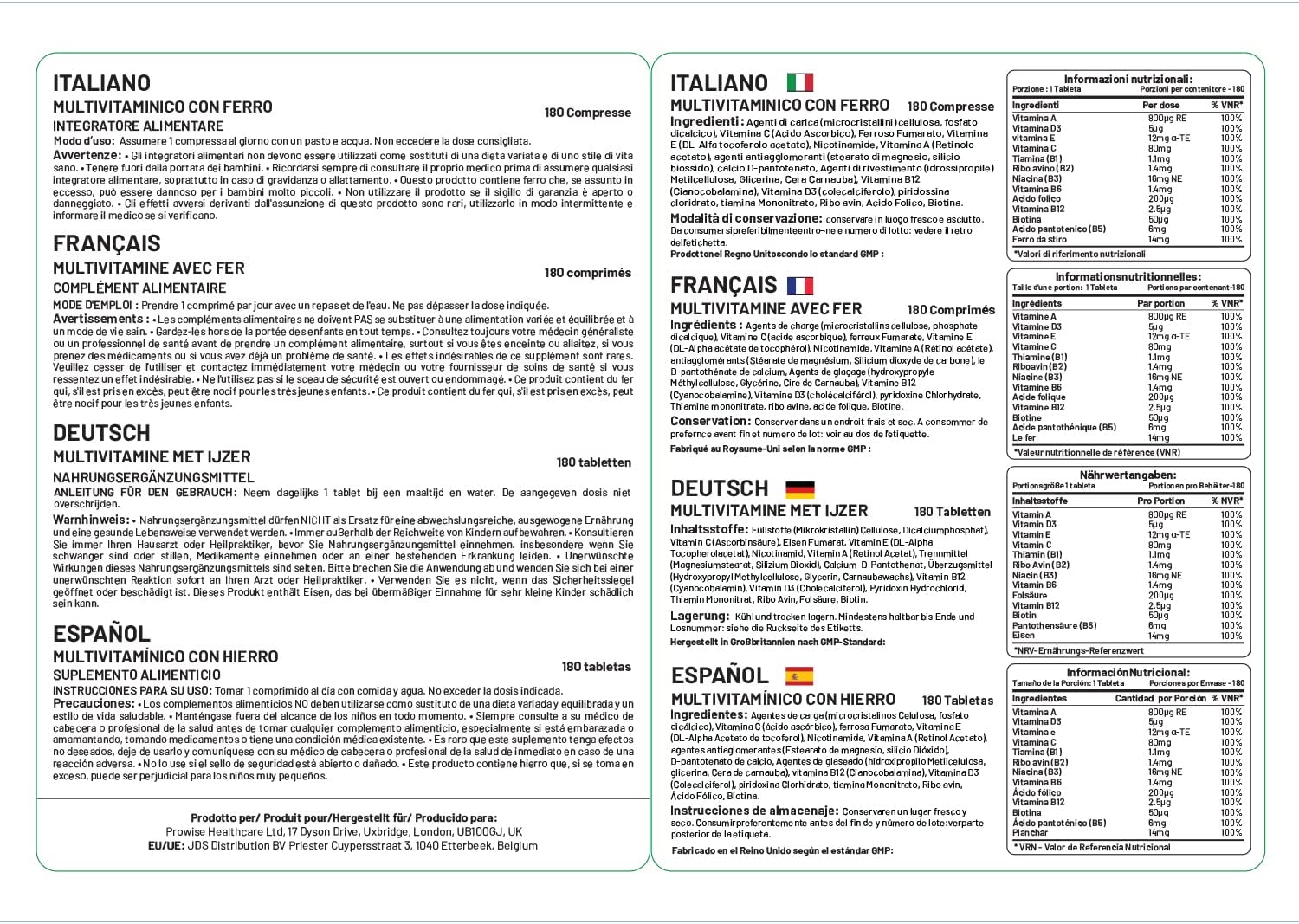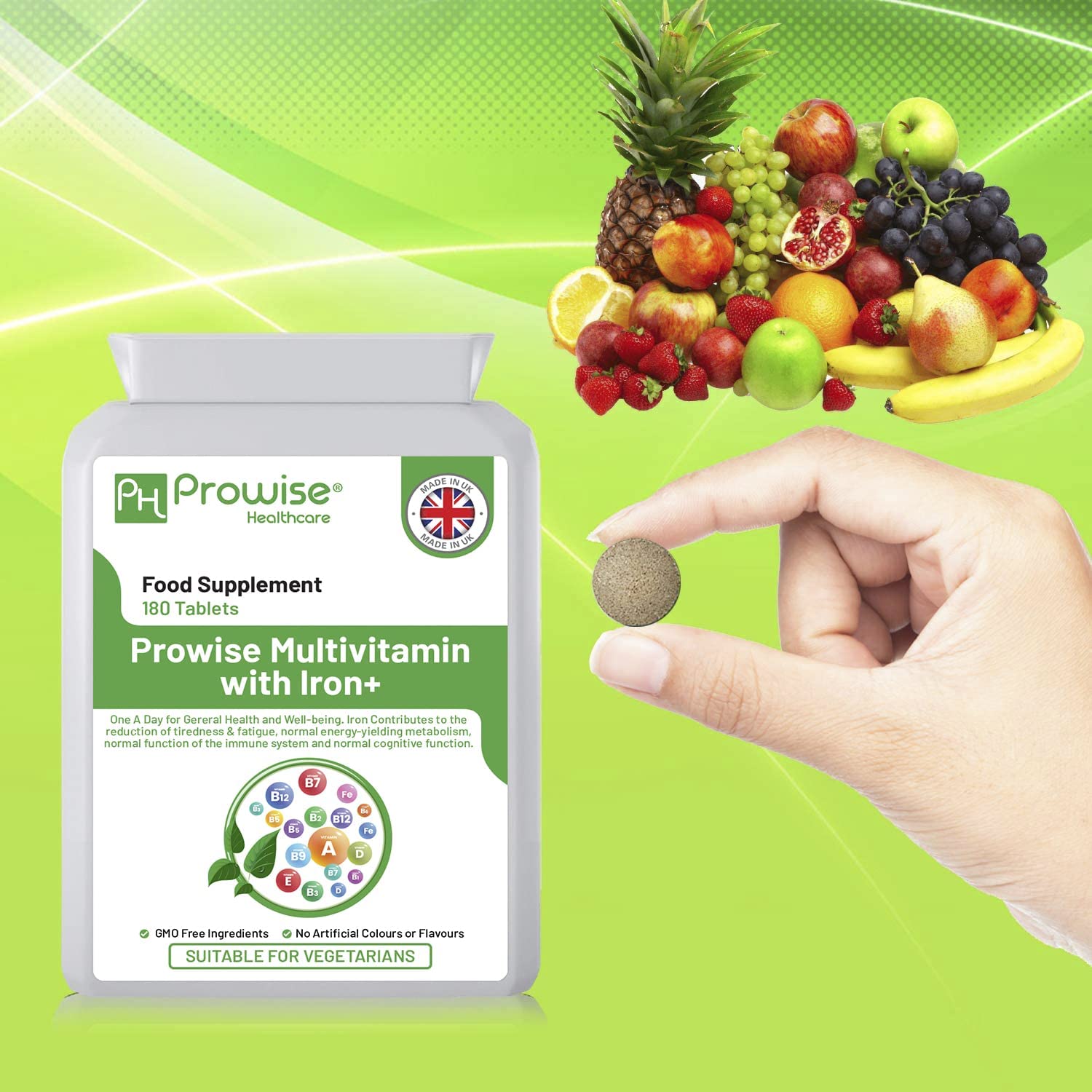 Prowise UK Multivits & Iron+ is a balanced multivitamin supplement designed to support daily nutritional intake for both women and men.
