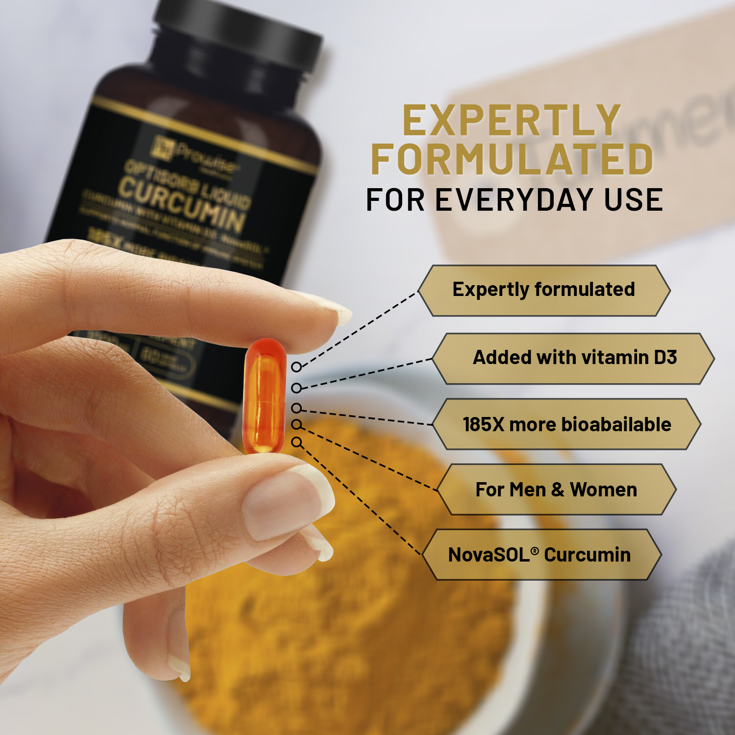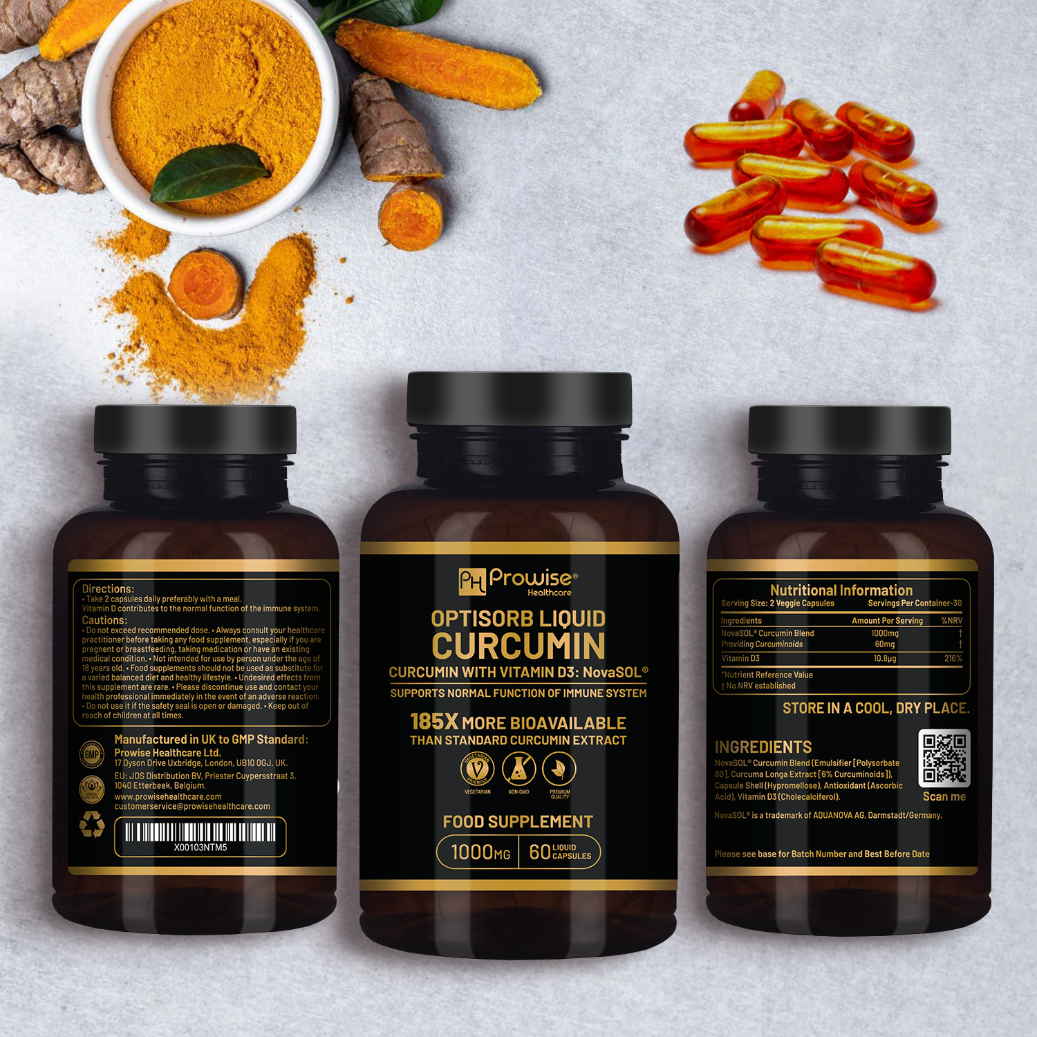 Experience next-generation absorption with Prowise UK Optisorb® Liquid Curcumin, powered by NovaSOL® micellar technology for exceptional bioavailability, and enriched with Vitamin D3 to support bones, muscles, and immune health.