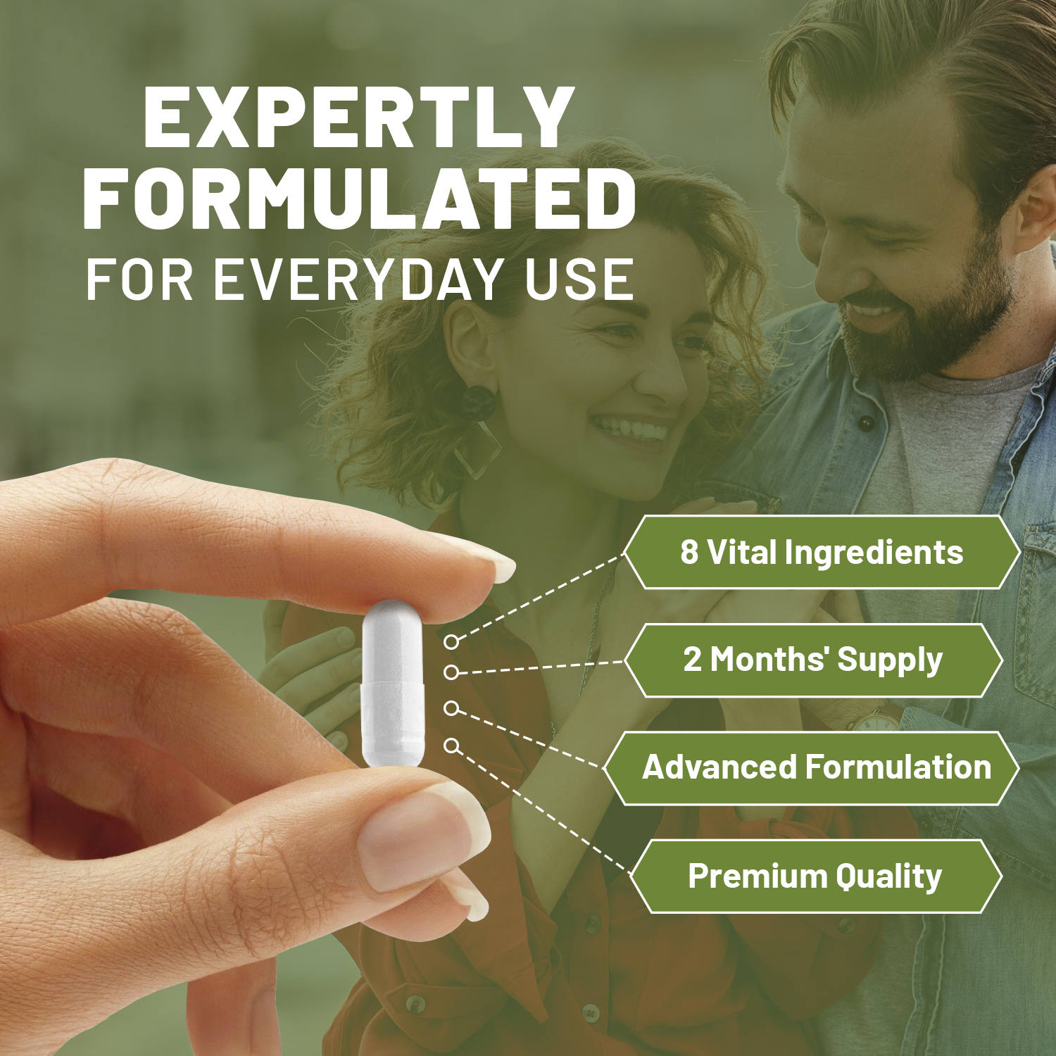 Each bottle contains 120 vegan capsules, providing a 2-month supply when taken as directed.